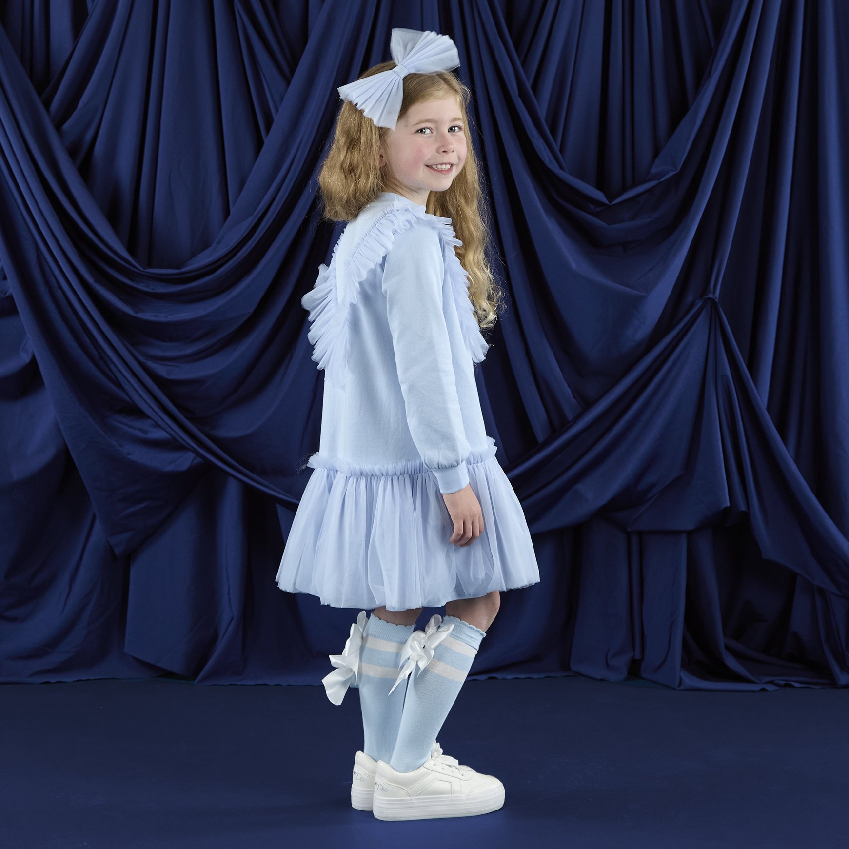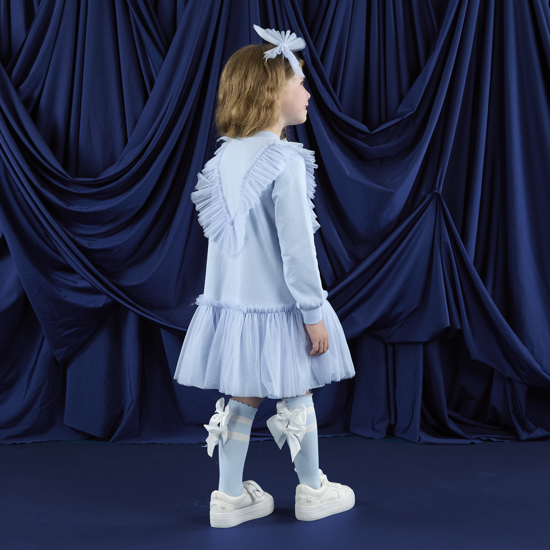 The stunning Lacey dress features a tulle frill feature on the front and matching tulle frill skirt as well as a cute logo artwork on the front.
