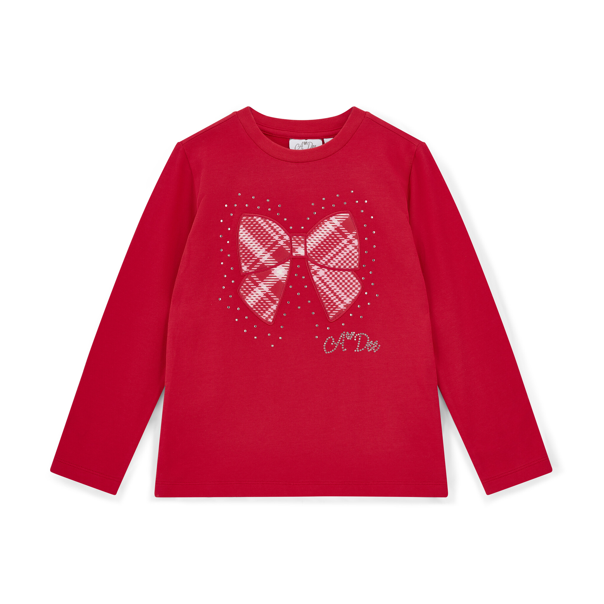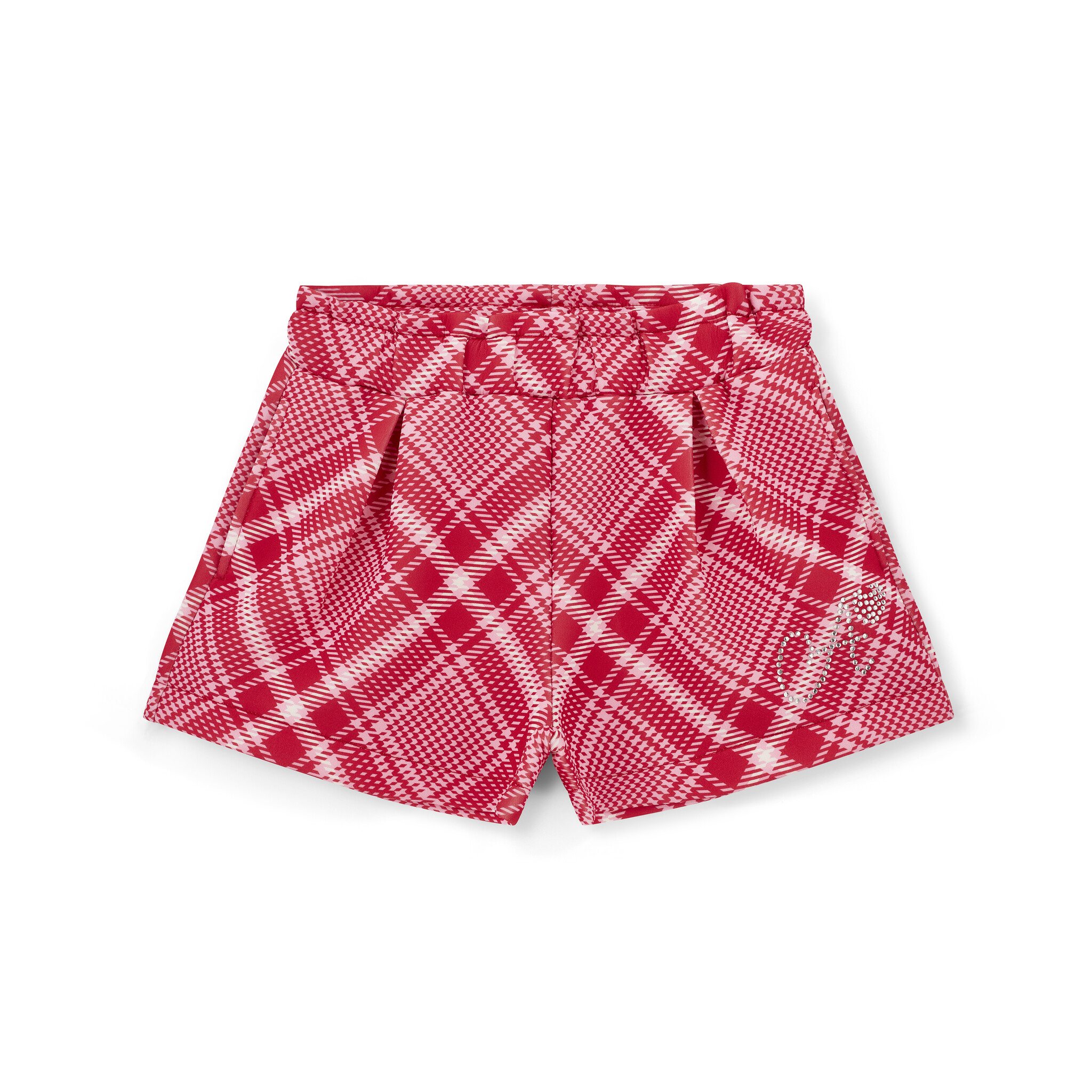 The Lexi short set includes printed check shorts with an elasticated branded waistband, paired with a long sleeve jersey top with a pretty printed check bow artwork.