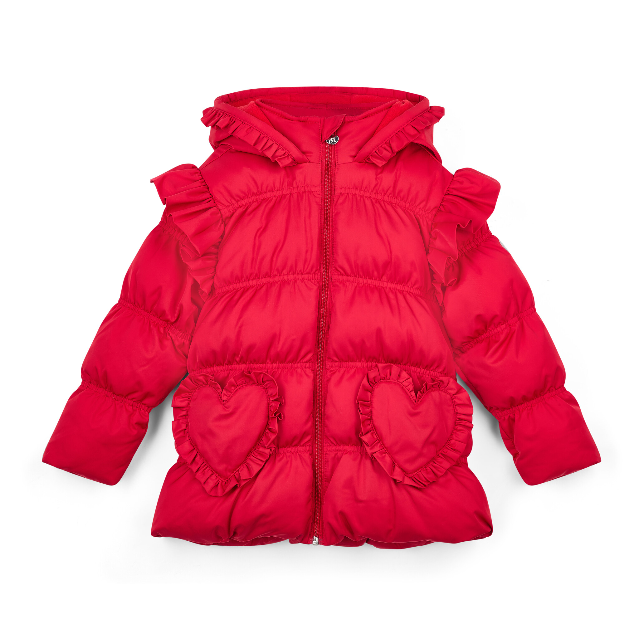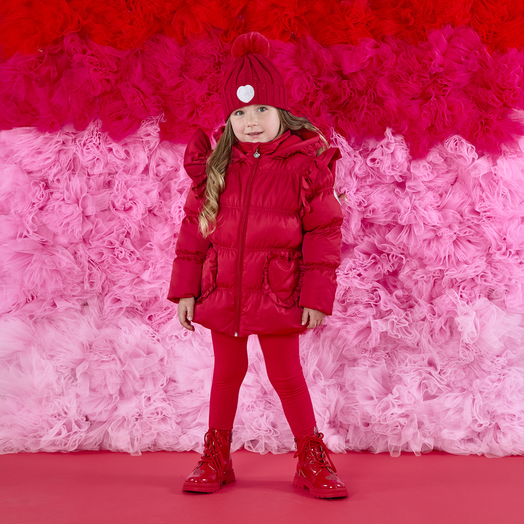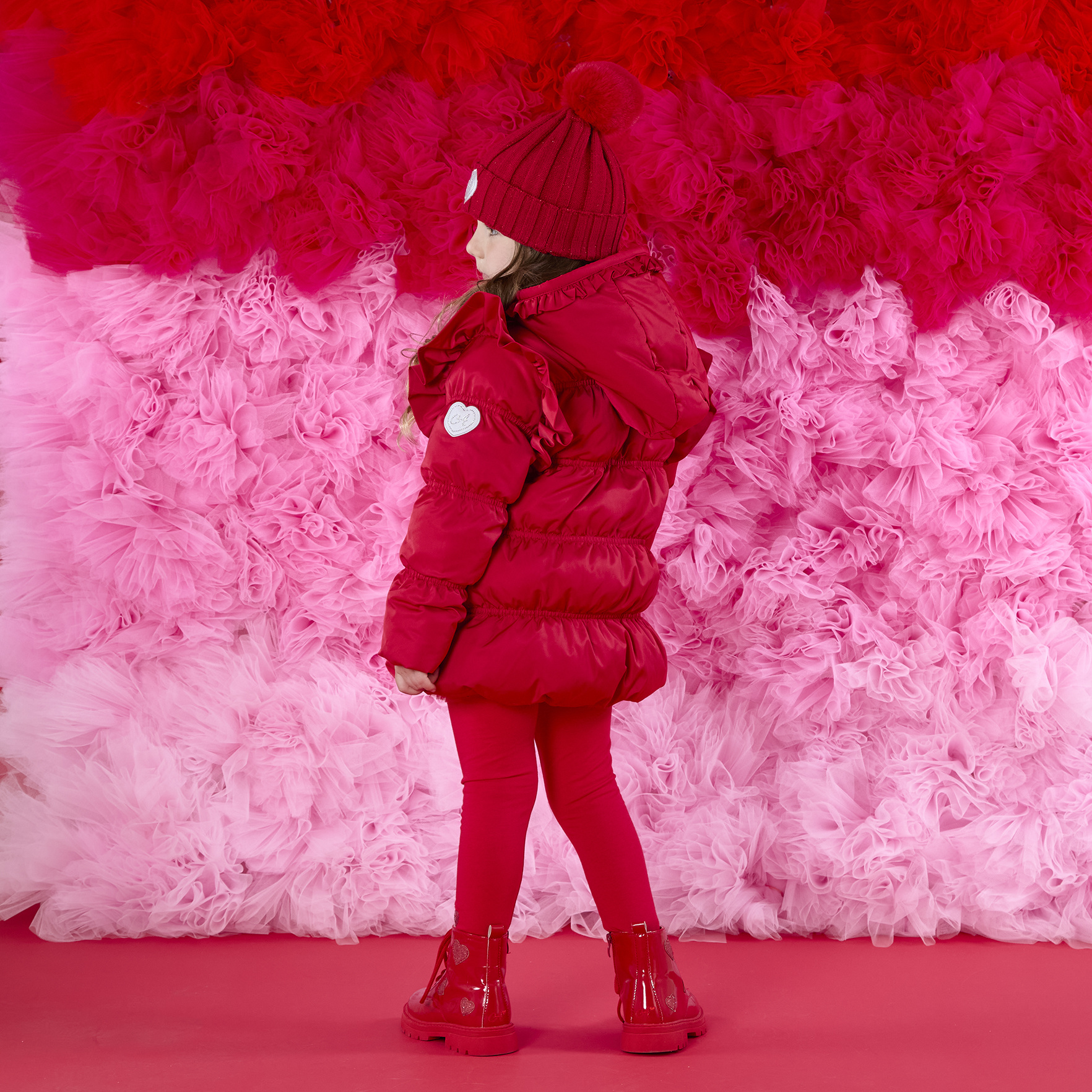 The Liliana padded jacket comes in three cute colourways, all featuring heart shaped frill pockets and frilled shoulders. Finished with a cosy oversized hood, zip fastening with branded puller and diamante logo badge on the sleeve.