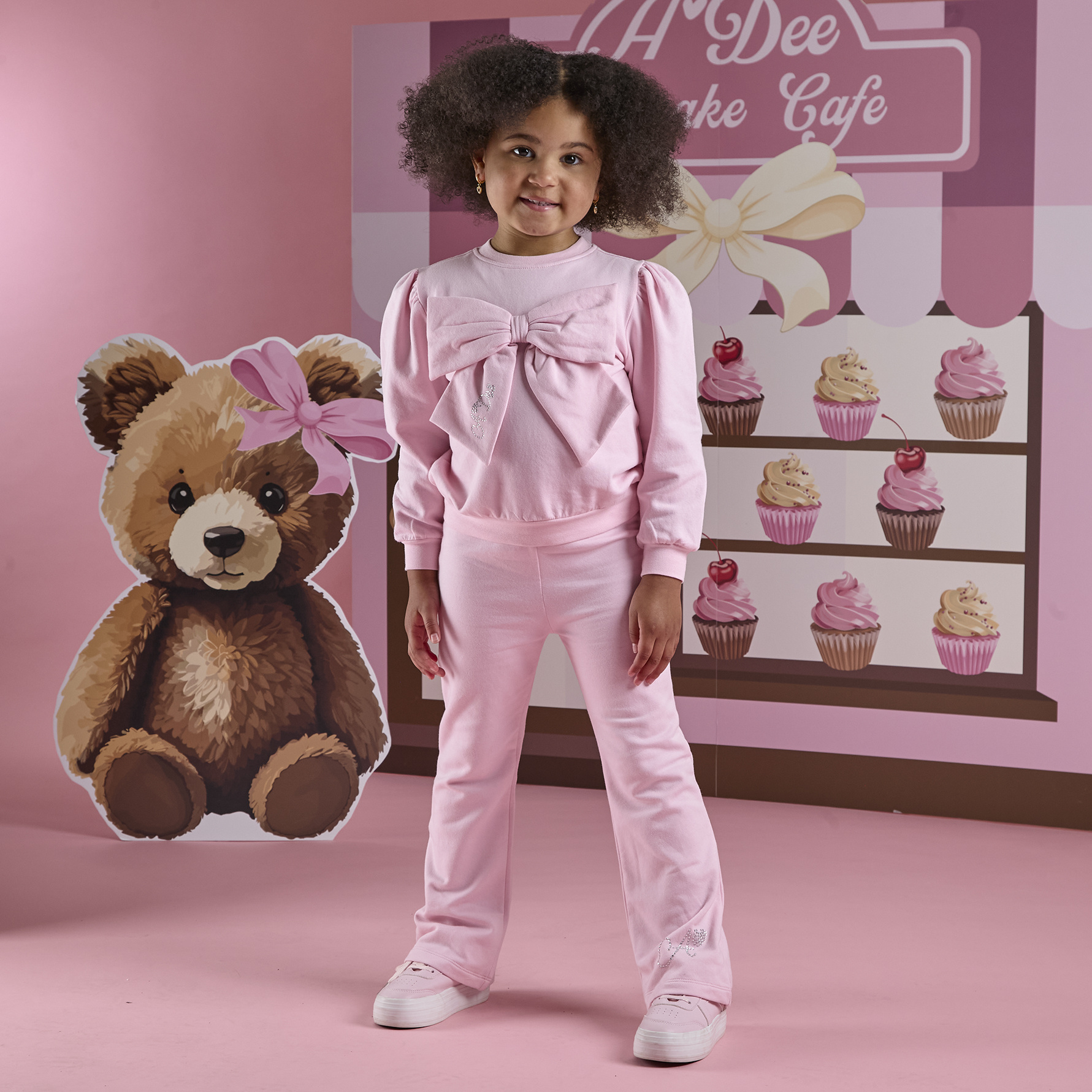 This super cute Luna Tracksuit will be a staple in your AW wardrobe! Featuring puff sleeves and flared joggers. Complete with a beautiful bow applique!