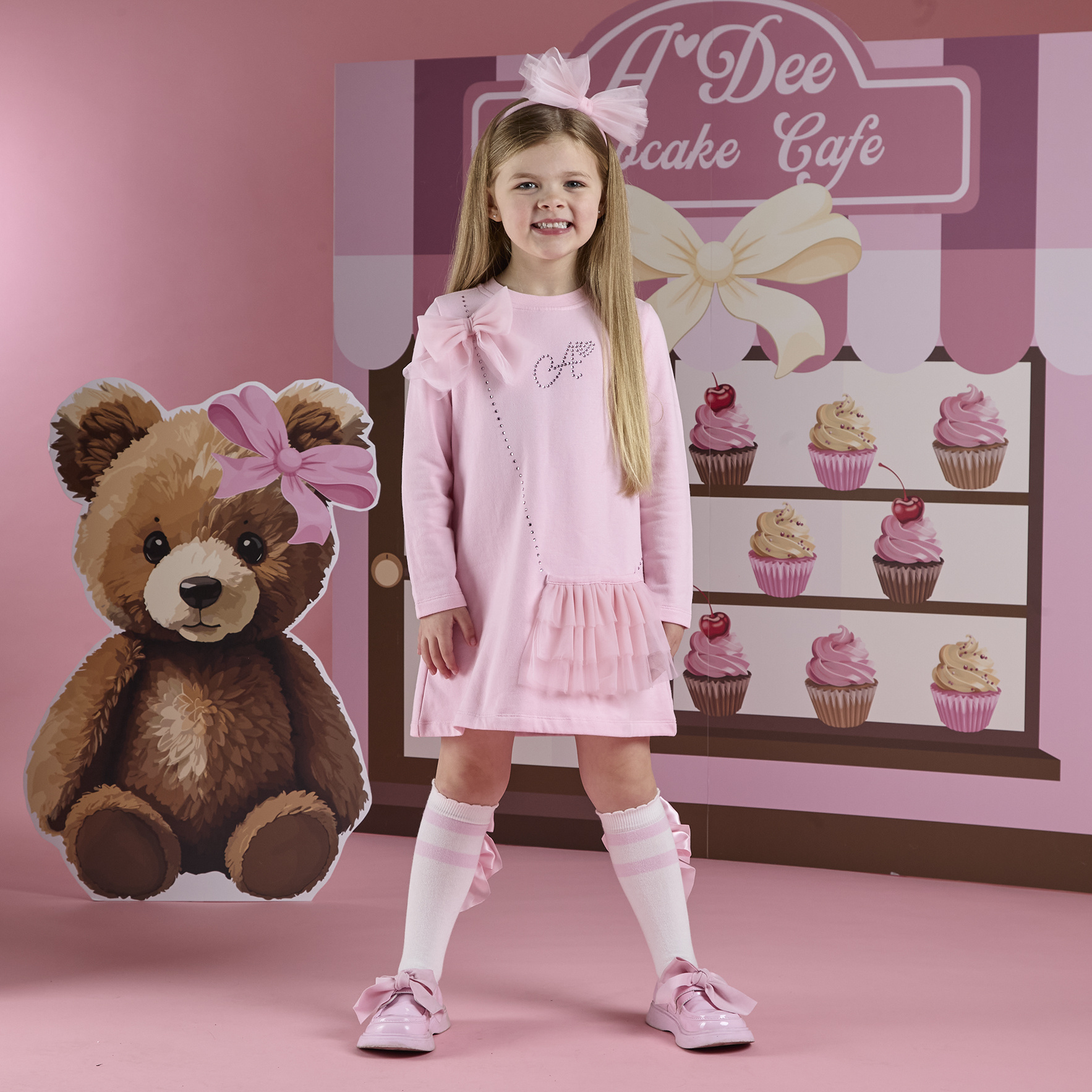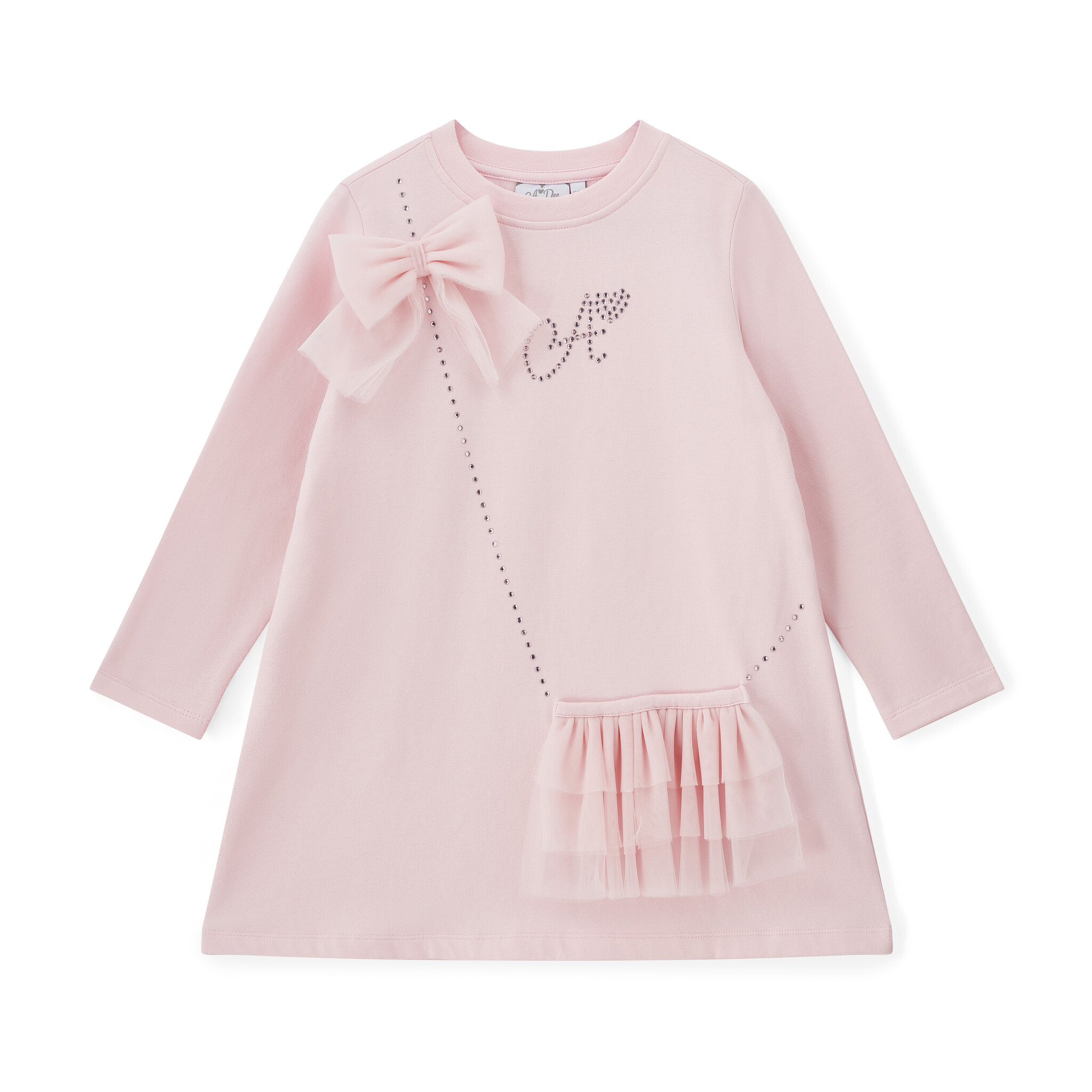 The Miracle jersey dress features a handbag applique artwork with a matching bow as well as diamante details to complete the look.