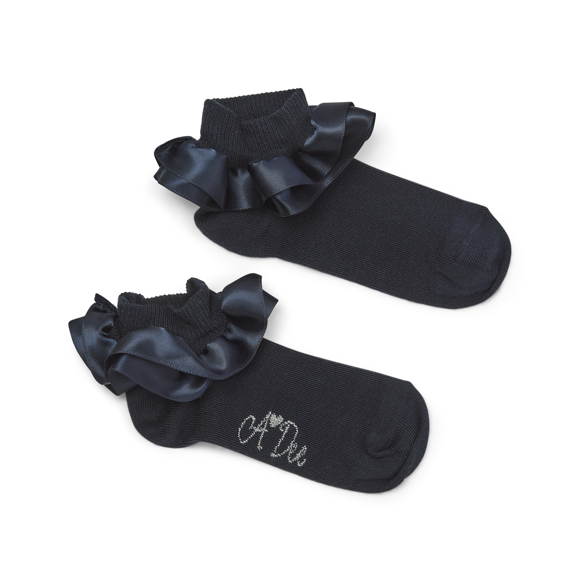 The Pixie ankle socks come in 3 classic colourways with a satin frill detail around the cuff, adding a touch of style to any outfit.