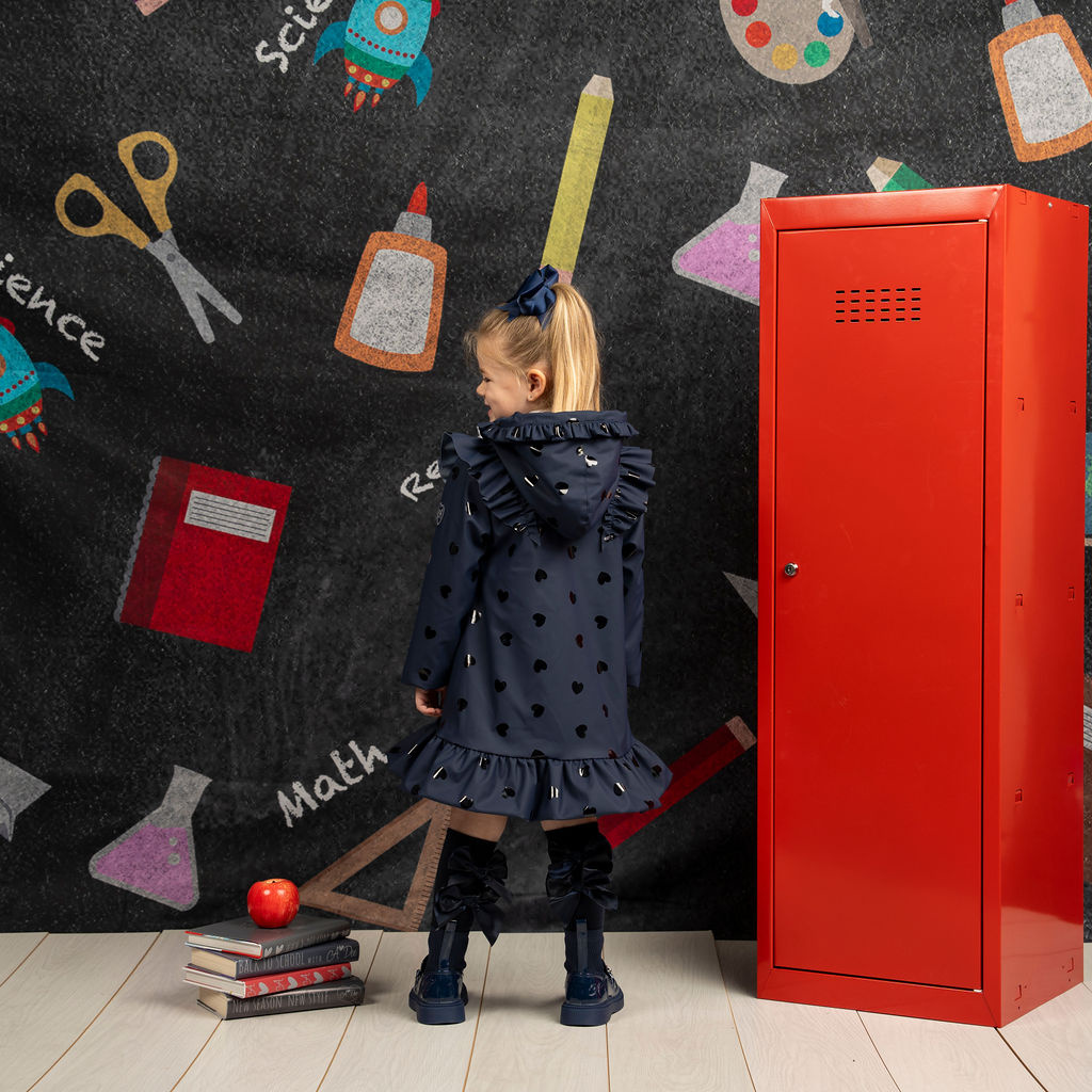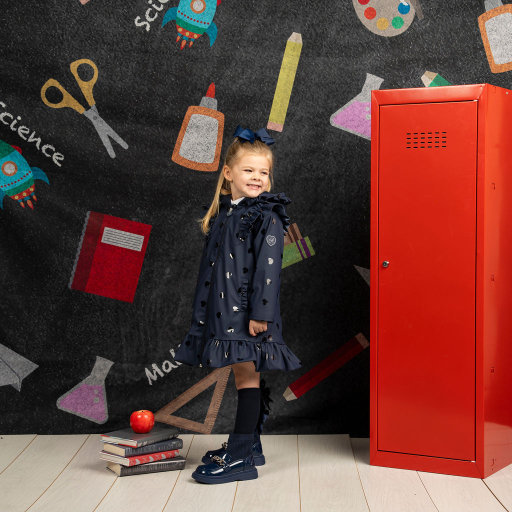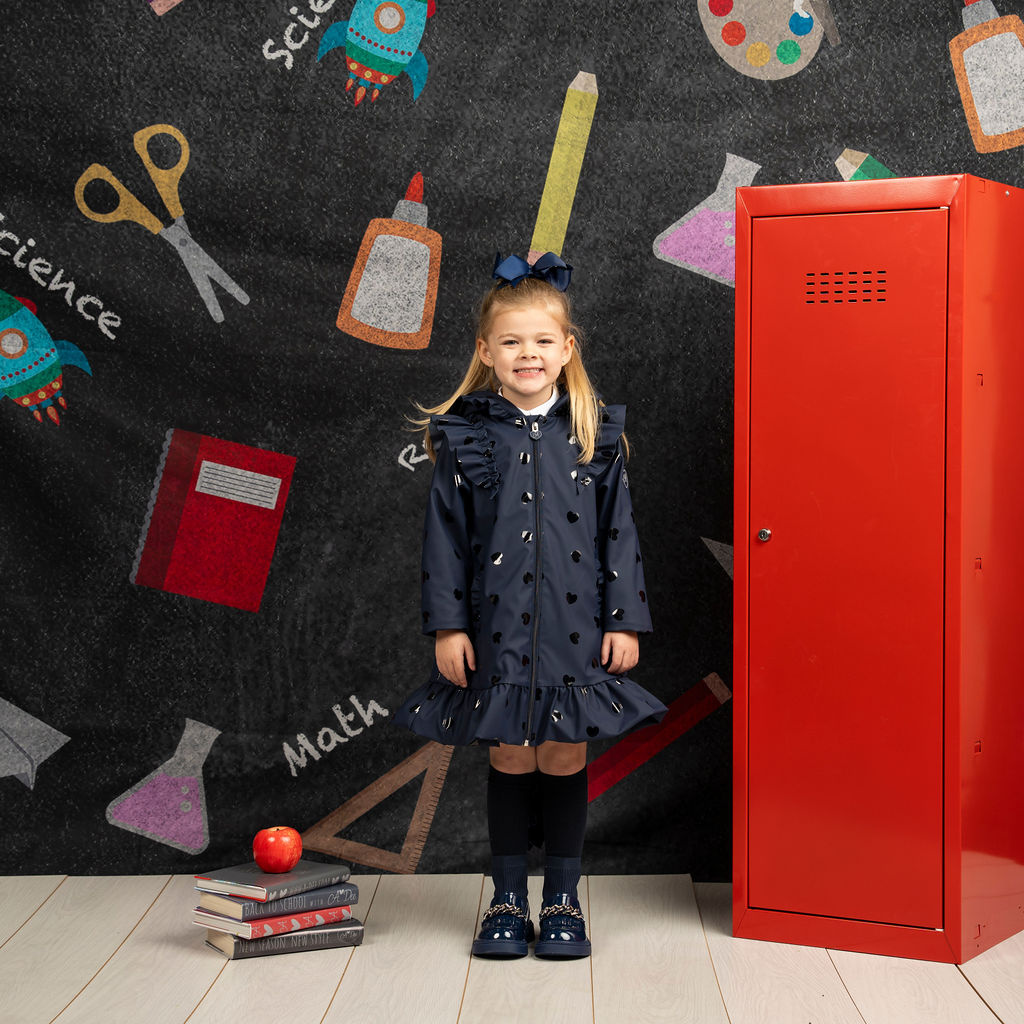 • The Stella is the must-have back to school raincoat! Stella features plenty of frills with frilled pockets and shoulders as well as a cute frilled hood. Complete with a silver reflective logo badge on one arm and a silver branded puller.