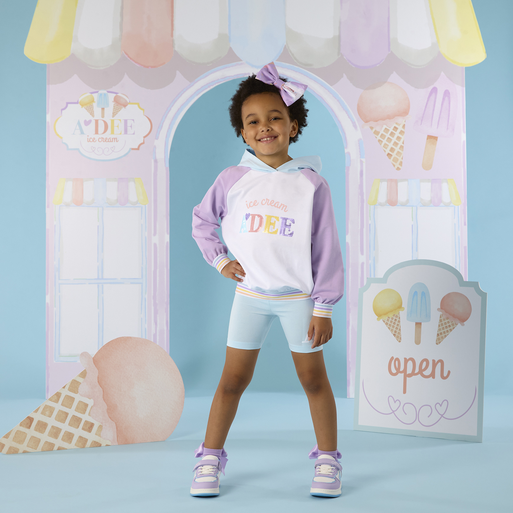 Stay on trend with the Sissy cycling short set. Featuring a colour block hooded sweatshirt and cycling shorts, with sequin logo details.