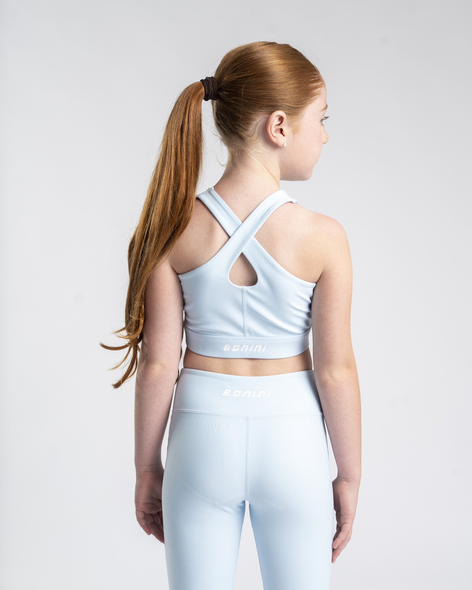 The Aspire Crop Top with a twist! Features a printed logo artwork on front and back has a cross over detail.
