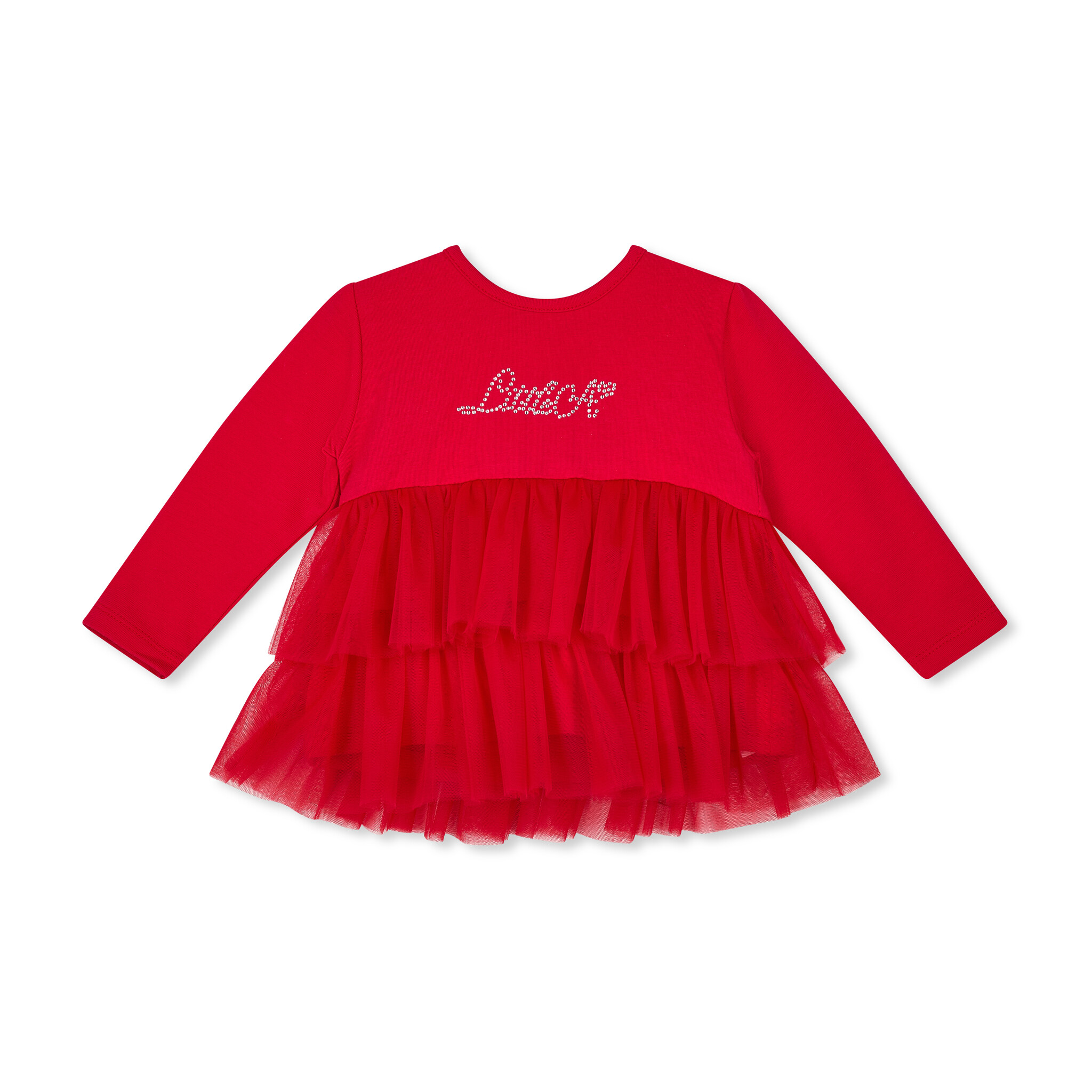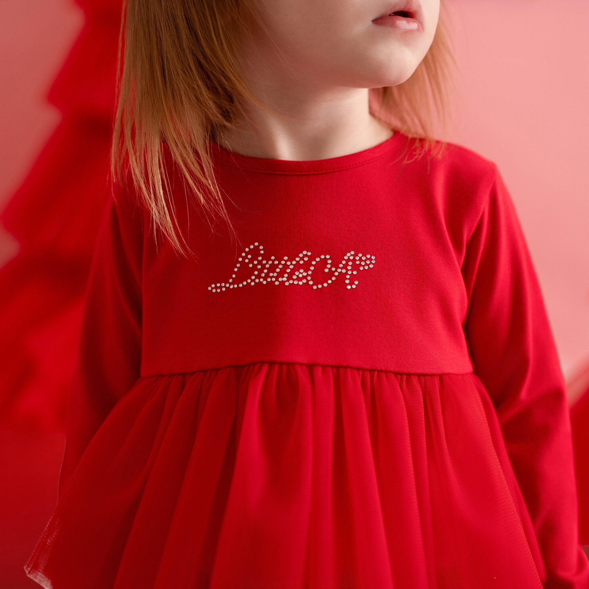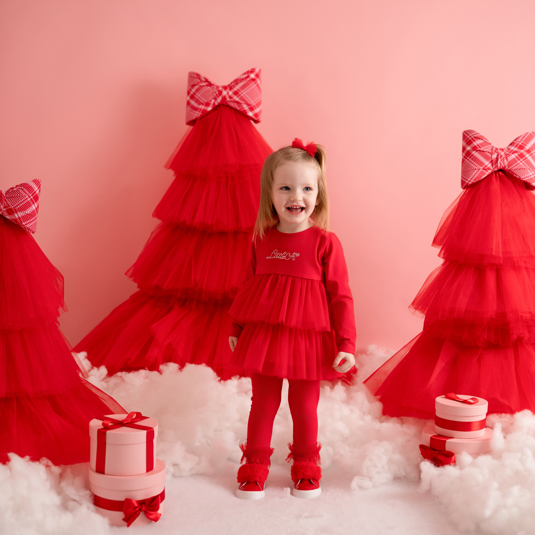 The Kayla legging set features a layered tulle long sleeve top with diamante branding. Paired with leggings with a bow on each ankle.