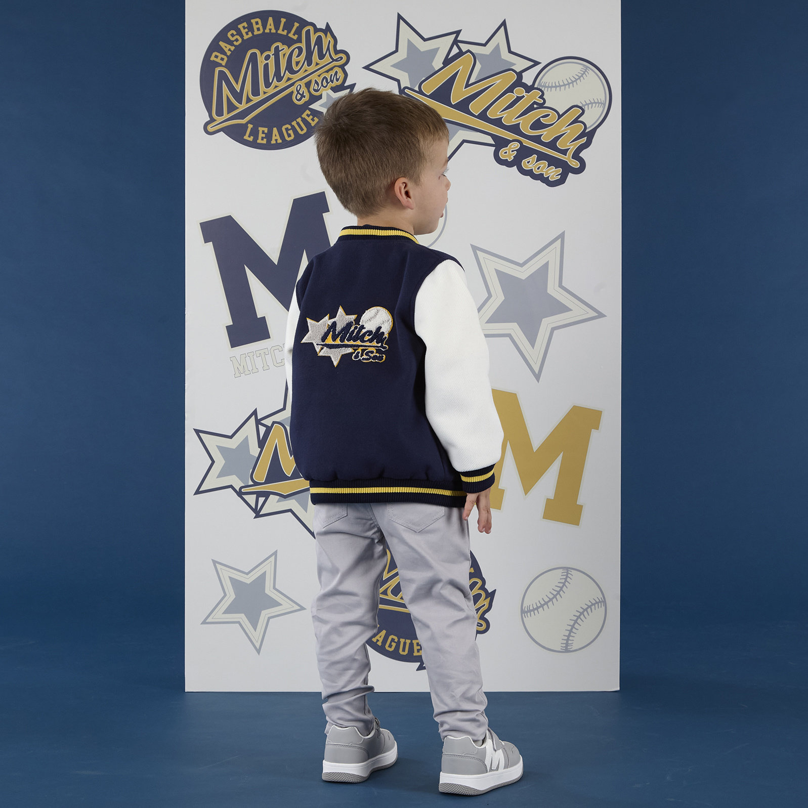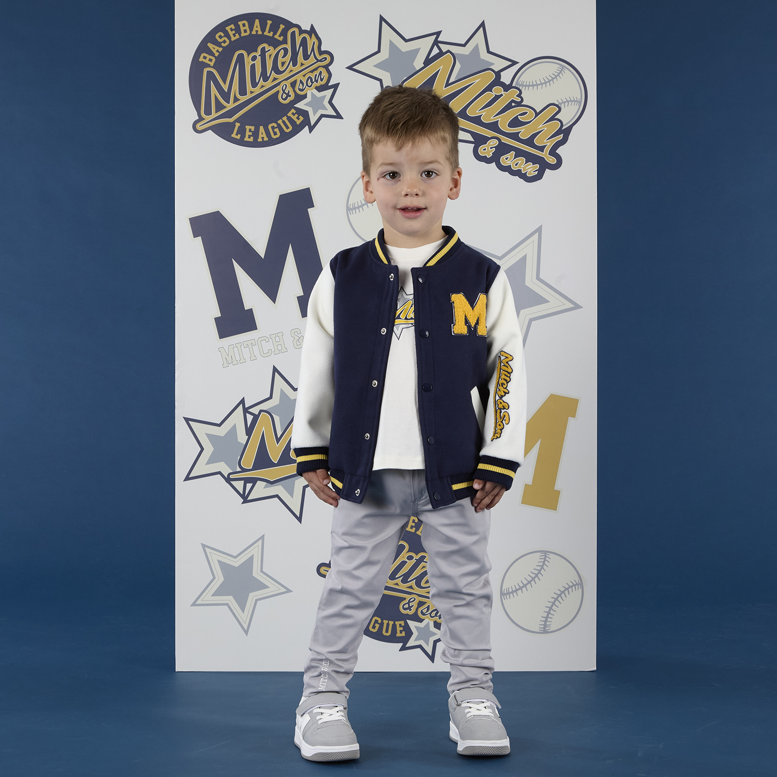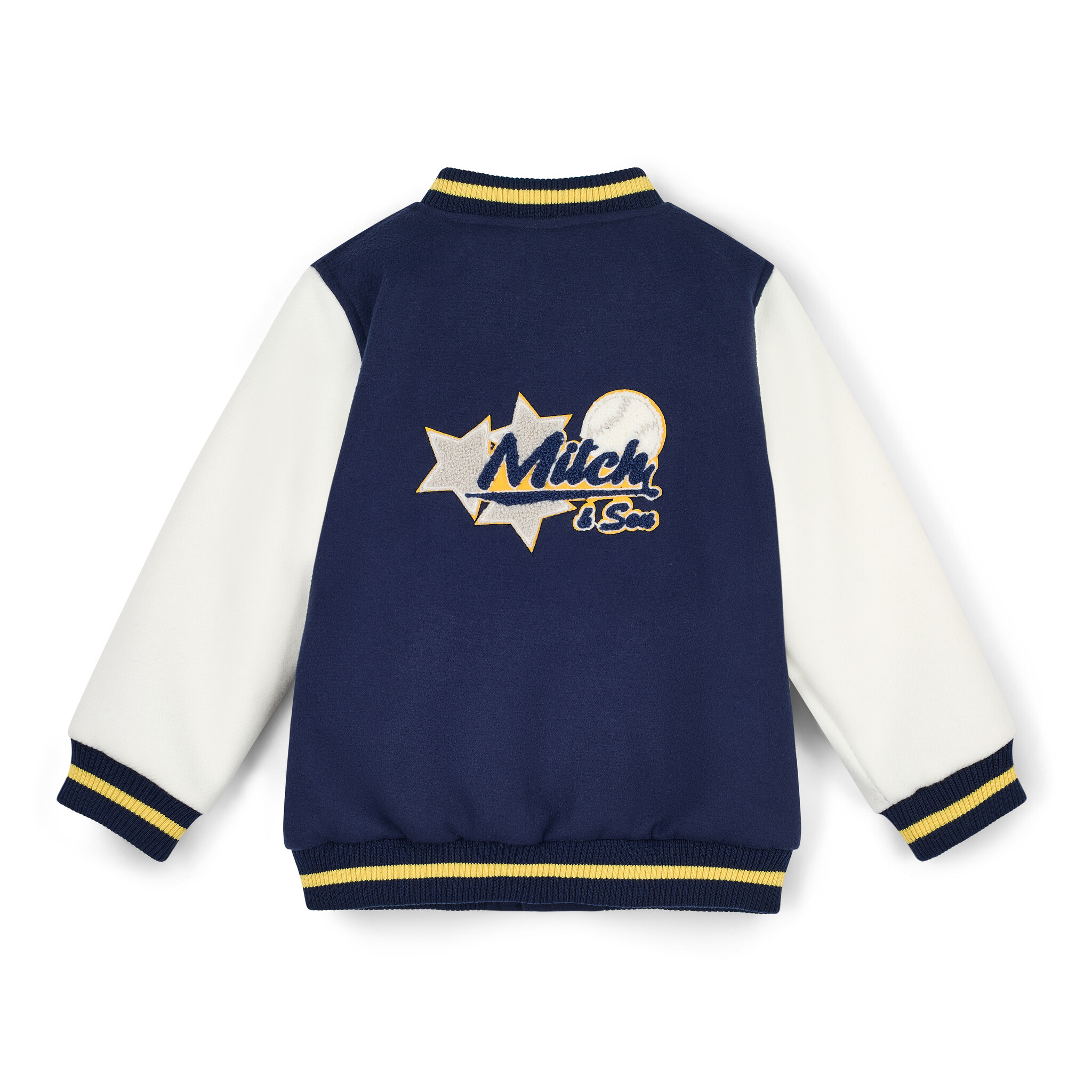 'The Kano bomber jacket is the coolest addition to your Winter wardrobe with its varsity-style design. Featuring a large 'M' logo on the chest, with Mitch & Son branding on one sleeve for a signature touch. A yellow stripe runs through the ribbed cuffs, waistband and collar. Perfect for layering, its a standout jacket for everyday wear.