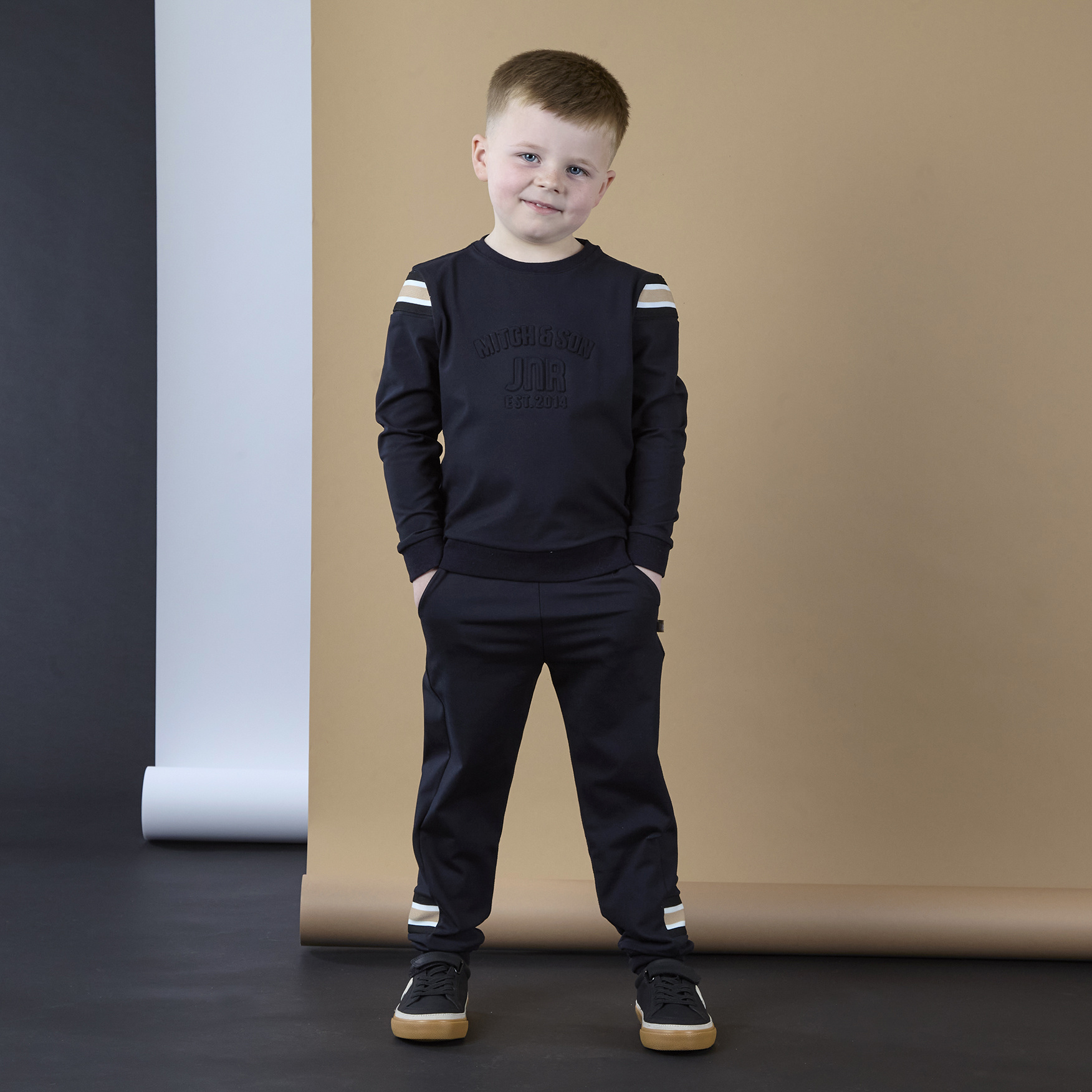 • The Luis Tracksuit combines comfort with sleek design. The embossed crewneck set includes a soft, brushed sweatshirt and matching joggers both featuring a stripe design on the sleeves and legs. Finished with a subtle branding on the front.